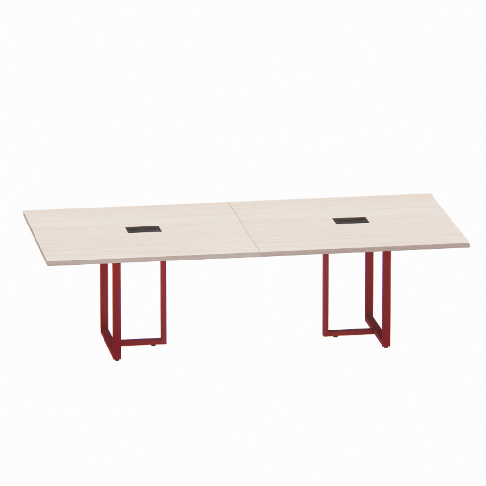 Mesa de Reunião Retangular com Power Box Tubular Bipartida P25 Pandin 2,6 M Casablanca e Vermelho